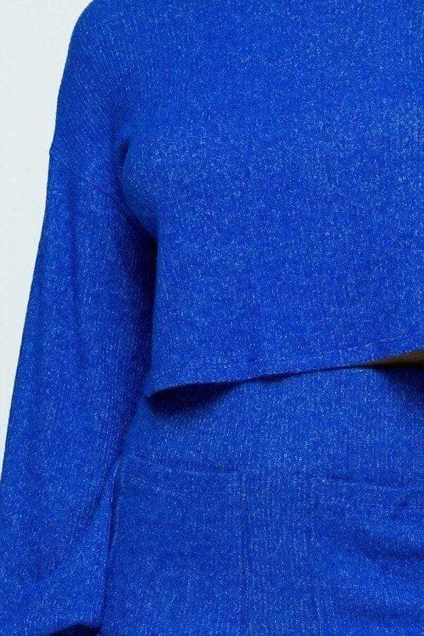 Royal Long Sleeve Cowl Neck Sweater And Mini Skirt